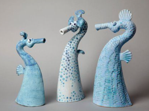 Vi mixer farver og nuancer direkte ind i leret og arbejder med former og figurer inspireret af søpindsvin, koraller, tangplanter, fisk og havets stemninger.